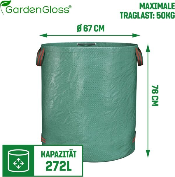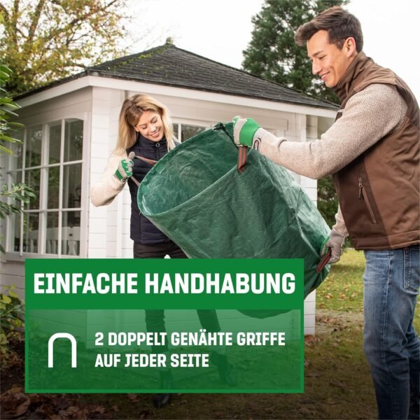 Large capacity – Whether green cuttings, twigs, leaves or moss, flowers, small twigs from bushes or branches. Thanks to the large capacity of 272 litres, the garden bag is sufficiently large for any type of waste from the garden.