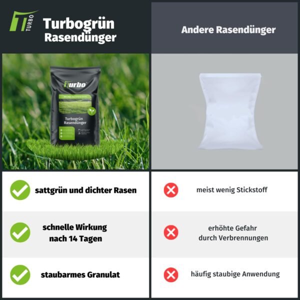 • Ideal for any type of garden lawn, the turbo green lawn fertiliser quickly makes it nice and green